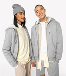 85% organic combed cotton/15% recycled polyester. Sherpa lined.French terry inner.Enzyme washed.Drop shoulder style.Straight fit.Two panel sherpa lined hood with self colour drawcord.Recycled metal eyelets and drawcord tips.Overstitching around the hood.Herringbone taped neck.Full length zip.Front pouch pockets.1 x 1 ribbed cuffs and hem.Twin needle stitching.Tag free.Recycled polyester is made from post-consumer waste.