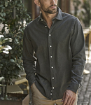 Garment washed.Shaped fit.Wide spread collar.Ascolite button wrapping.Modern shaped cuffs.Single button cuffs with button on cuff gauntlet.Curved hem.
